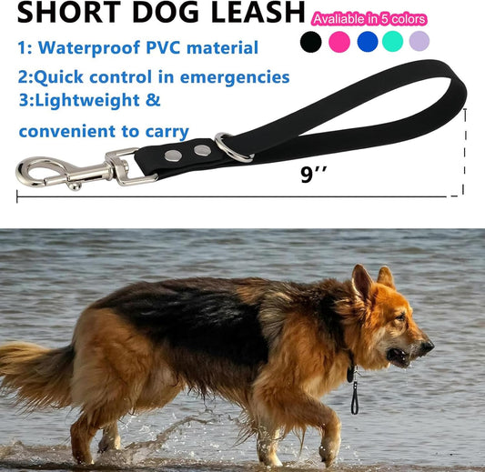 Short Dog Leash - 9 Inch Dogs Lead Grab Tab Heavy Duty Waterproof PVC Dog Training Traffic Leashes for Safety Control Behavior Correction Hiking Backup & All Breeds (Black, 9'')